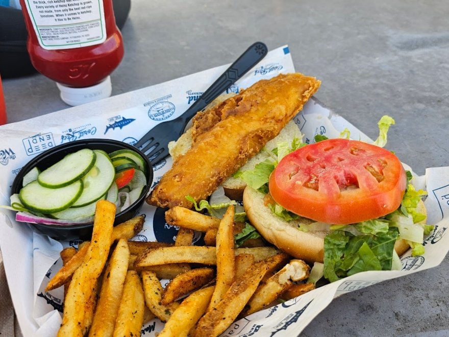 Food and drinks were exceptional and our waitress was so kind and patient. The outdoor seating views were gorgeous and the live music was a great touch. I got their locally caught fish sandwich with Mac n cheese and a pina coolatta, all was amazing, fresh, and affordable!